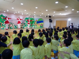 今日は、クリスマスお誕生会がありました。サンタさんが遊びに来てくれて、お誕生日月のお友達には、サンタ...