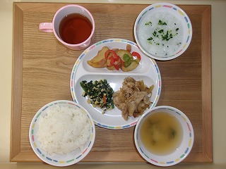 献立・ご飯がススム!豚肉の生姜焼き・菜種和え・ジャーマンポテト・味噌汁(もやし・わかめ) ...