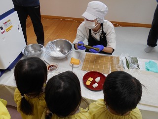 今日は、おすしパーティーがありました。おすしロボットがシャリを作るところや、おすしができあがるところ...