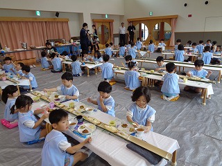 今日は、そうめんパーティーをしました。竹に入ったそうめんを、自分達で作ったランチョンマットの上で食べ...